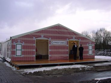 Voor een eerstepaal-festijn een stationsgevel ontworpen en