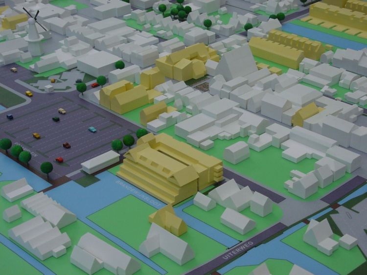Nieuwe bebouwing in geel gespoten kunststof.